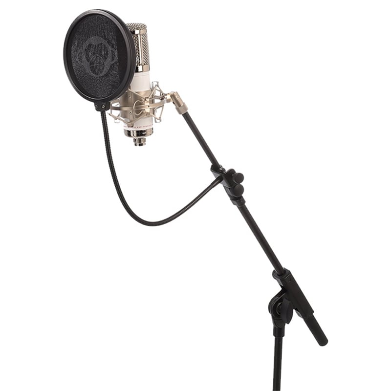 Monkey Pop é um Popfilter para reduzir o ruído durante os processos de gravação do microfone. É composto por um anel de plástico coberto com DLM - Double Layer Membrane, conectado por um pescoço de ganso flexível com parafuso de fixação para fixação no pedestal do microfone e para o posicionamento ideal do filtro pop.