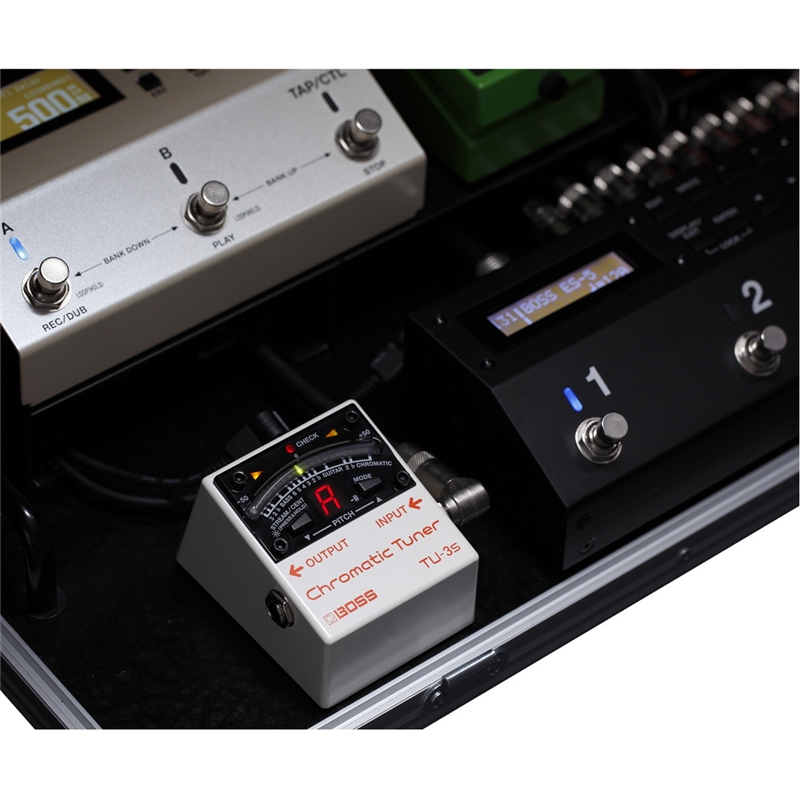 O BOSS TU-3 é um pedal de afinação de referência, respeitado por músicos de todo o mundo devido à sua fiável operabilidade e resistência à prova de balas. Compactando o seu tamanho, o TU-3S disponibiliza a mesma qualidade de referência e poupa espaço precioso na pedalboard. As funções de ecrã e afinação são idênticas às do TU-3, a única diferença é a ausência do switch no pedal. Sempre ativo e pronto a usar, o TU-3S é perfeito para usar em sistemas de alternância de pedais como o BOSS ES-8 e ES-5, e ideal para qualquer setup em concertos onde o espaço é um luxo.