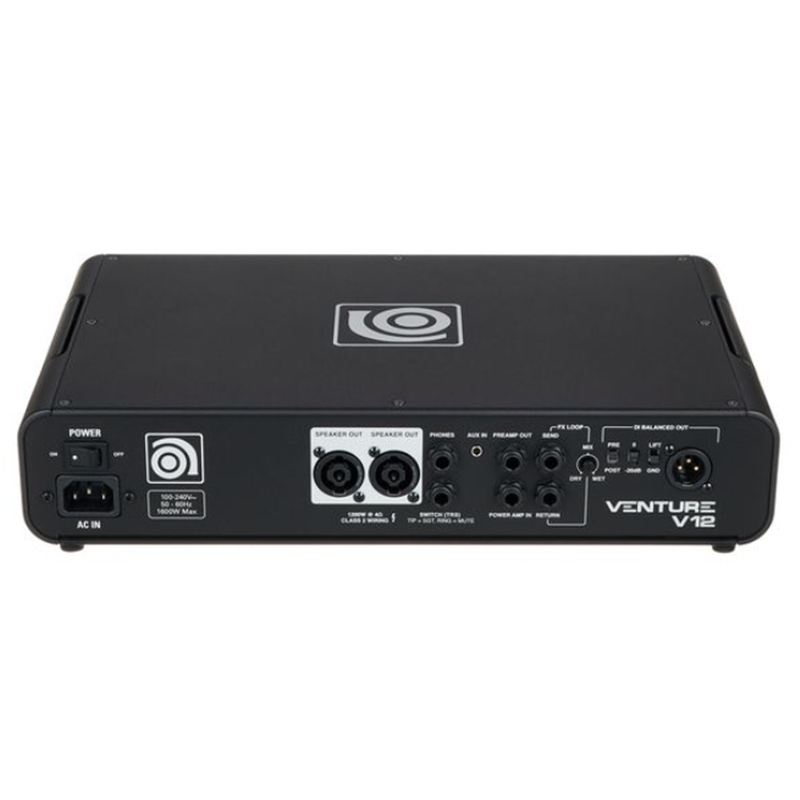 O Venture V12 de 1200 watts é o maior e mais potente dos três cabeçotes da Série Venture, mas pesa menos de quatro quilos e cabe numa capa ou na bolsa de transporte Venture opcional, sendo ideal para baixistas que viajam. A sua secção de potência Classe D oferece potência mais do que suficiente para alimentar qualquer coluna da Série Venture ou praticamente qualquer outra coluna que os baixistas possam encontrar nas suas viagens.
