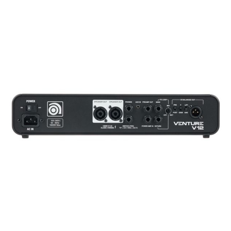 Ampeg A Venture incluiu uma prática funcionalidade Preamp Out/Power Amplificador In no V12, que lhe permite tirar partido dos EQs e circuitos de drive integrados quando utiliza outros amplificadores. Isto permite-lhe usar o Venture V12 como um pré-amplificador em combinação com um amplificador de potência externo, dando-lhe acesso tanto às suas capacidades de modelação de tom como à potência de um amplificador maior.