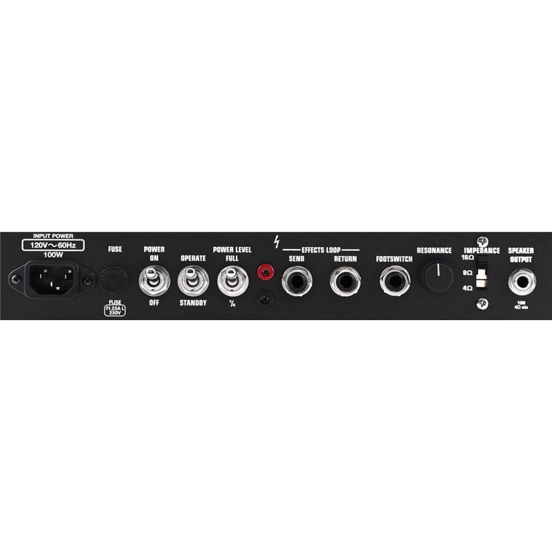 Os esecutantes do quarto podem utilizar o interruptor de 1/4 para reduzir a cabeça para 3,5 watts e evitar perturbar o resto da casa, enquanto os músicos de estúdio e ao vivo podem usar esse mesmo recurso para aumentar a cabeça para um tom comprimido e esponjoso. Este amplificador também é equipado com dois conectores de saída de altifalante paralelo, loop de efeitos e pedal de um botão.