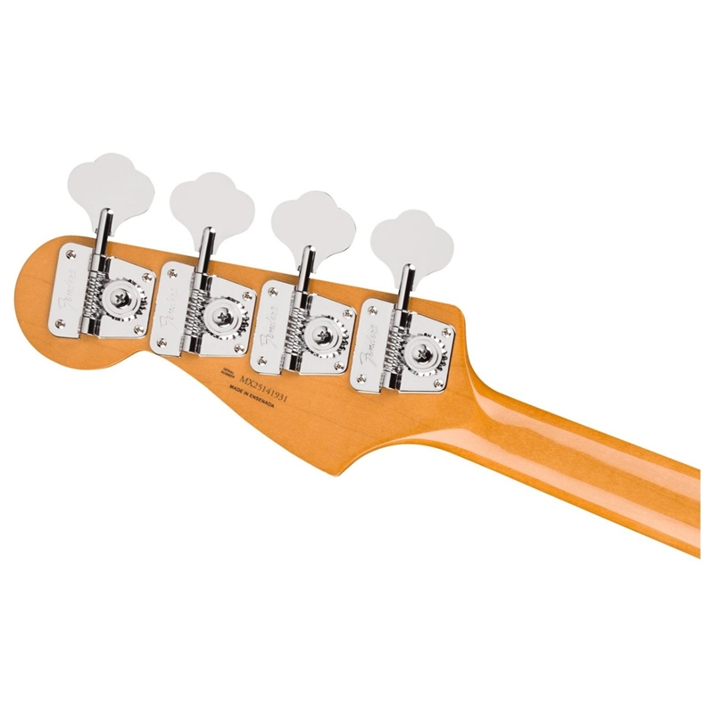 A completar o caráter autêntico do instrumento estão componentes de estilo vintage cuidadosamente selecionados. As cravelhas de estilo vintage com parte traseira aberta proporcionam ajustes de afinação suaves e fiáveis, mantendo a estética clássica Fender associada aos instrumentos do início dos anos 70. Uma porca de osso melhora o sustain e a consistência da afinação, ajudando as notas a soarem claramente em todo o braço. Detalhes como o pickguard de pergaminho de 3 camadas, o layout de controlo serrilhado e a placa do braço em estilo vintage contribuem para a aparência correta do baixo para a época. Juntos, esses elementos criam um instrumento que captura o espírito do Jazz Bass original, ao mesmo tempo que oferece a confiabilidade que os músicos modernos esperam.
