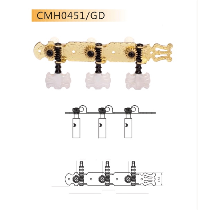 Conjunto de carrilhôes dourados para guitarra clássica. Contém lado direito e esquerdo.