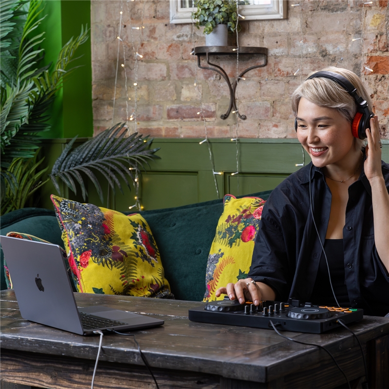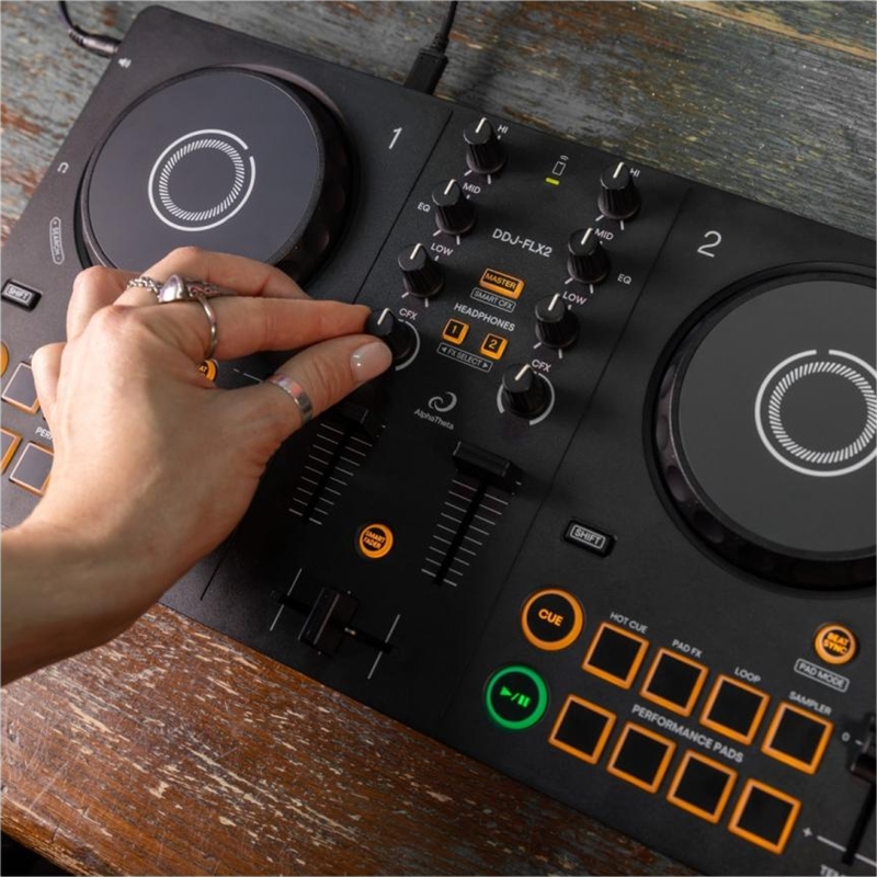 O AlphaTheta DDJ-FLX2 é o sucessor oficial do bem-sucedido controlador de DJ DDJ-200 e, graças à sua interface de áudio integrada, é ideal para principiantes que querem começar a misturar de imediato. Com a sua interface de fácil utilização e compatibilidade com aplicações de DJ populares, como o rekordbox, Serato DJ Lite e djay, oferece tudo o que os DJs precisam para serem criativos. Depois de instalar uma destas aplicações no seu smartphone, tablet ou computador, basta ligar o dispositivo ao controlador e está pronto para começar - com transições perfeitas e efeitos emocionantes que os DJs profissionais utilizam.