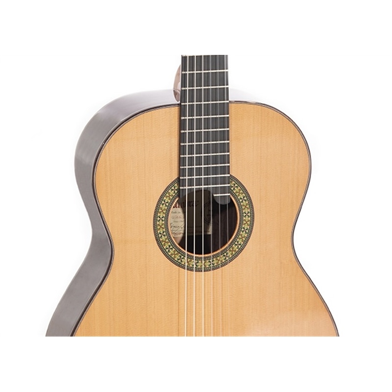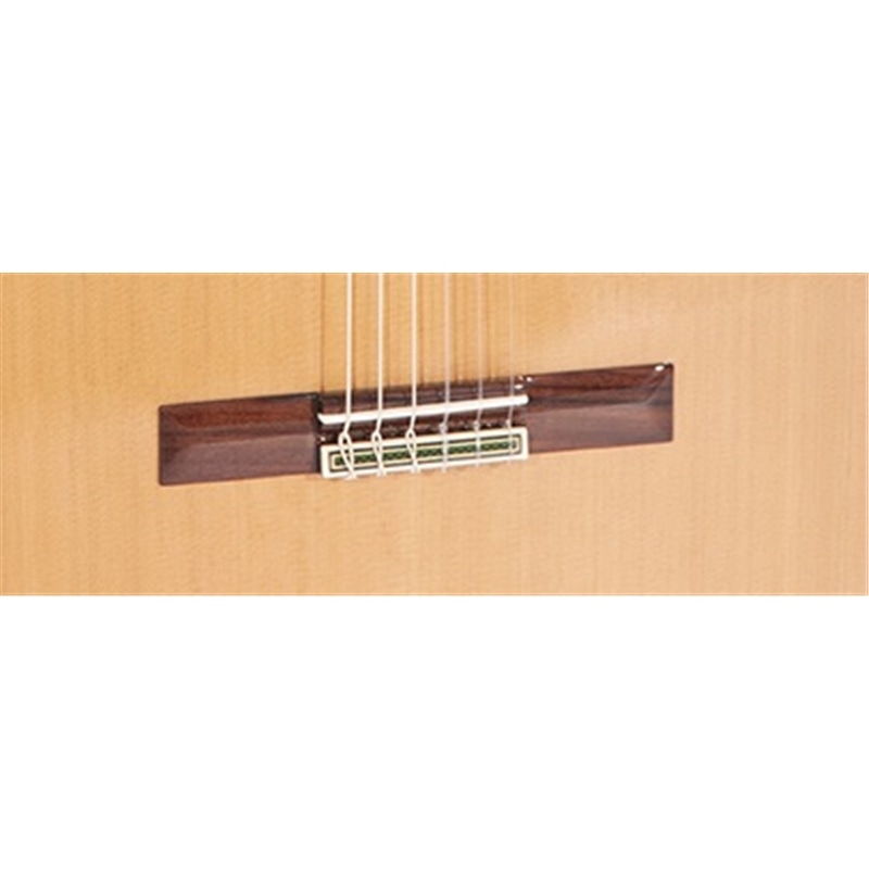 Além disso, este instrumento é construído com osso nas pestanas da cabeça e do cavalete, um material que tem sido tradicionalmente usado e cujas capacidades de vibração são excepcionais. Recursos que, juntamente com uma seleção cuidadosa de madeiras e uma elaboração artesanal, produzem um som forte, encorpado, em nível de concerto.