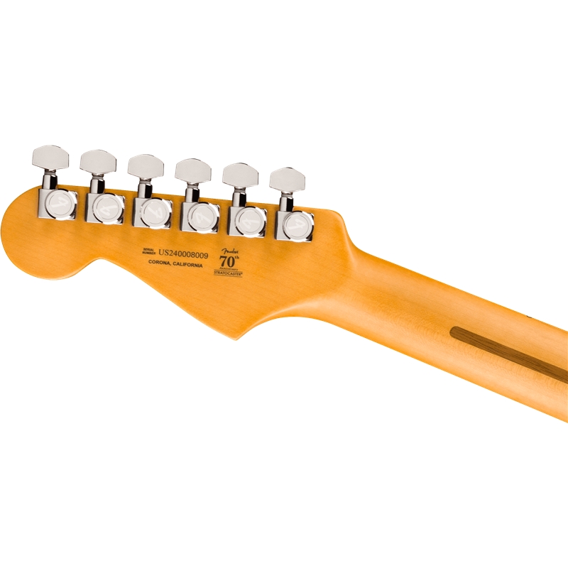 Apresenta um trio de captadores Ultra II Noiseless™ Vintage Strat® que oferece tudo, desde limpezas cristalinas doces até leads escaldantes, tudo sem um zumbido. O interruptor S-1™ patenteado da Fender desbloqueia habilmente configurações de captação adicionais para uma variedade tonal ainda maior. Recursos adicionais incluem, um tremolo sincronizado 2-Point American Ultra com braço pop-in, selas de bloco de aço inoxidável polido, bloco de aço laminado a frio, deluxe locking tuners, botões de toque suave e proteção de palheta de alumínio anodizado de 1 camada.