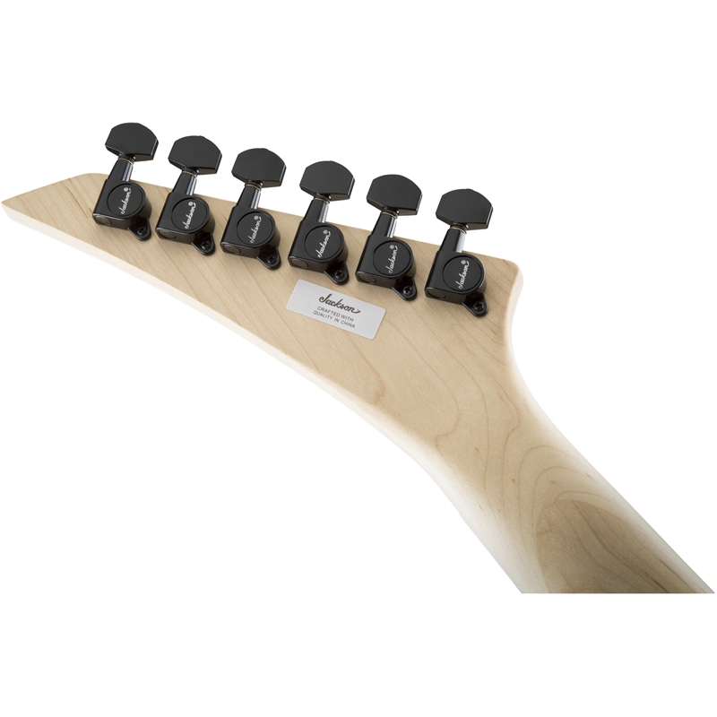 Disponível em vários acabamentos impressionantes, a JS32 DKA também possui encadernação branca no braço e hardware totalmente preto, incluindo uma ponte tremolo de travamento duplo Floyd Rose® da marca Jackson, botões de cinta padrão e afinadores fundidos.