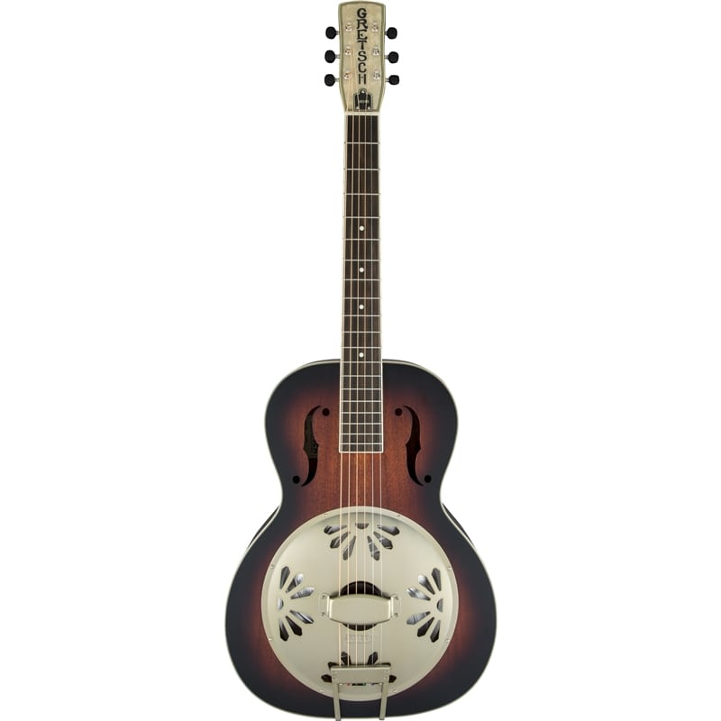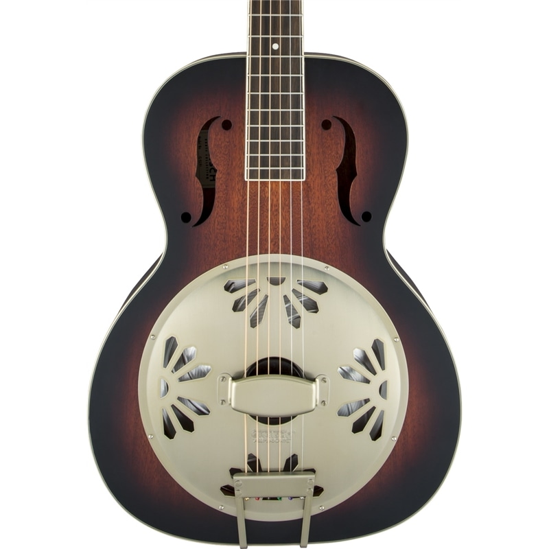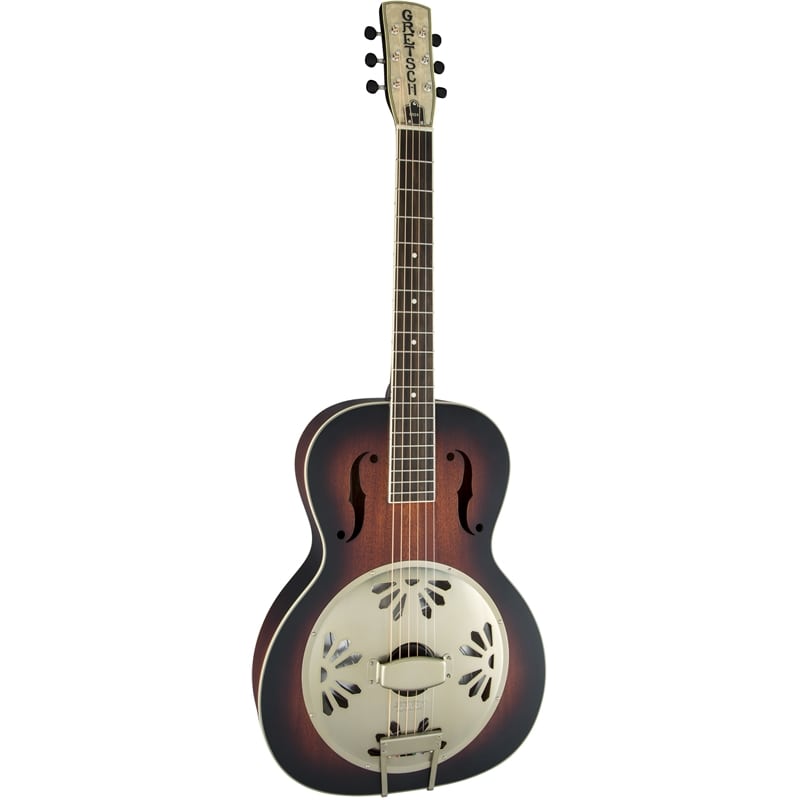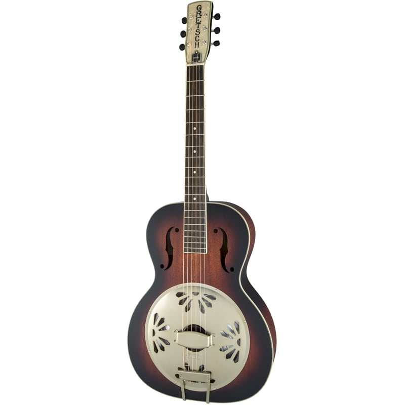 Quer toque ritmo, dedilhado ou qualquer outra coisa, a guitarra resonator Alligator Biscuit Roundneck toda em mogno com detalhes de luxo projeta o seu tom distintamente. Como todas as excelentes guitarras ressonator Gretsch, o recurso vital da G9240 é o diafragma Gretsch "Ampli-Sonic ™" Fiado à mão na Europa Oriental a partir de quase 99% de alumínio puro, o diafragma Ampli-Sonic produz uma qualidade e volume de tom impressionantes.