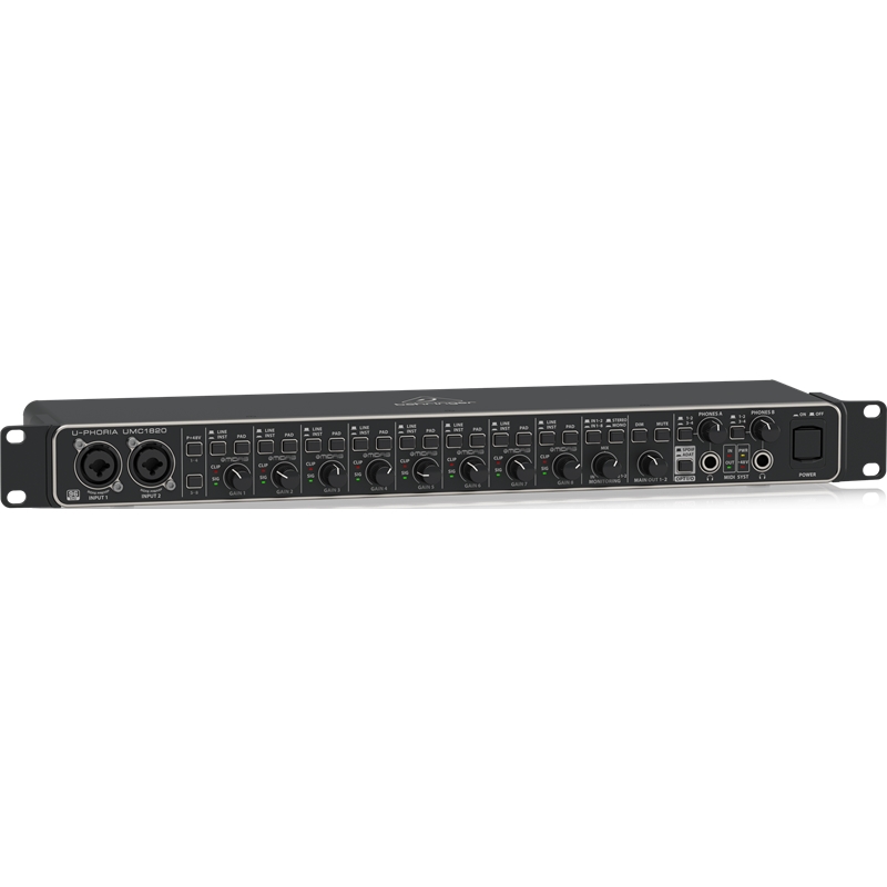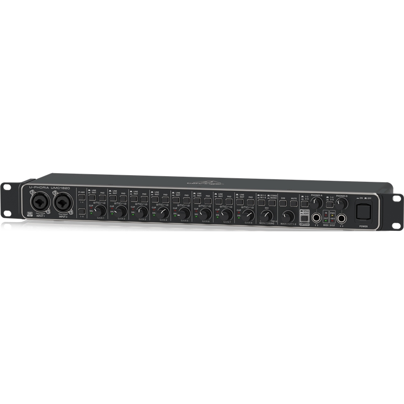 Grave o vocal perfeito diretamente no seu DAW baseado em computador, graças aos 8 pré-amplificadores de microfone projetados pela Midas incrivelmente claros e de classe mundial , que incluem alimentação phantom de +48 volts para microfones condensadores, todos passando por 24 bits / 96 kHz de nível de estúdio conversores para a melhor qualidade de som possível. Ele também fornece suporte de E/S para os formatos S/PDIF, ADAT e S/MUX. Se você é um cantor e compositor, produtor em trânsito ou apenas precisa de um interface sólido para executar faixas de apoio num show, o U-PHORIA UMC1820 ultra confiável o ajudará a brilhar no domínio digital.