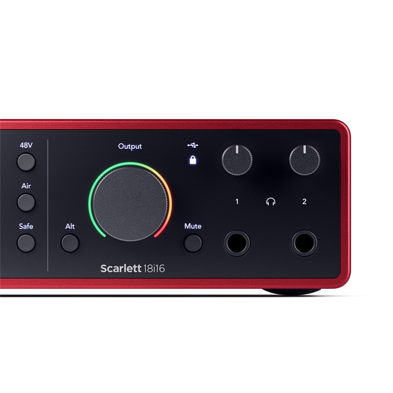 Scarlett 18i16 é o hub de estúdio compacto completo para todos os seus instrumentos e equipamentos de exterior. Perfeito para produtores, o 18i16 está equipado com E/S suficiente para ligar todo o seu equipamento de estúdio. Quatro dos nossos pré-amplificadores de microfone de ruído ultrabaixo mais detalhados. Ligações Hi-Z, line e MIDI para guitarras, teclados, sintetizadores, grooveboxes e controladores.