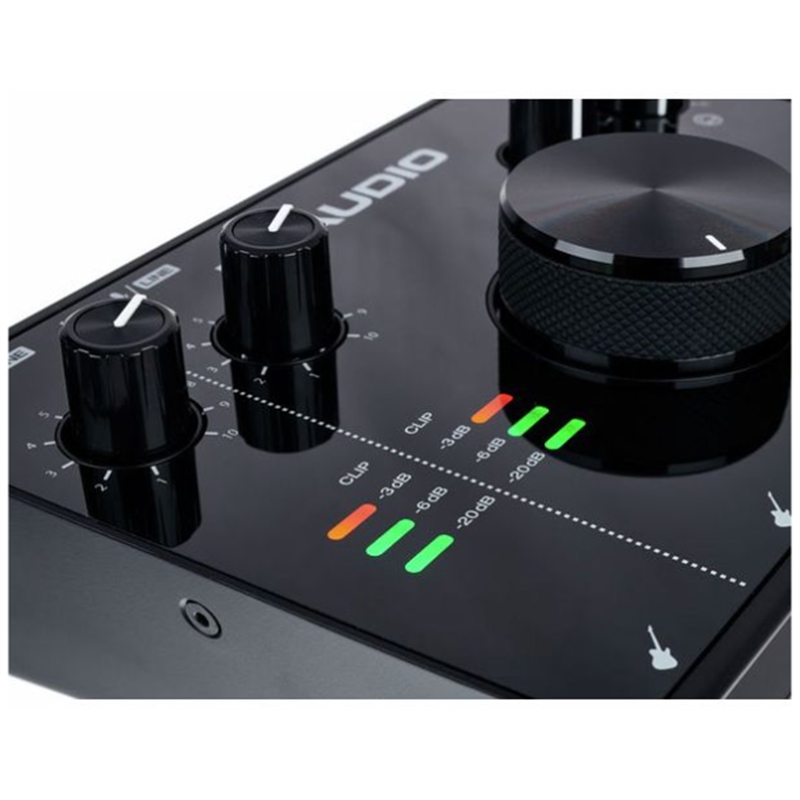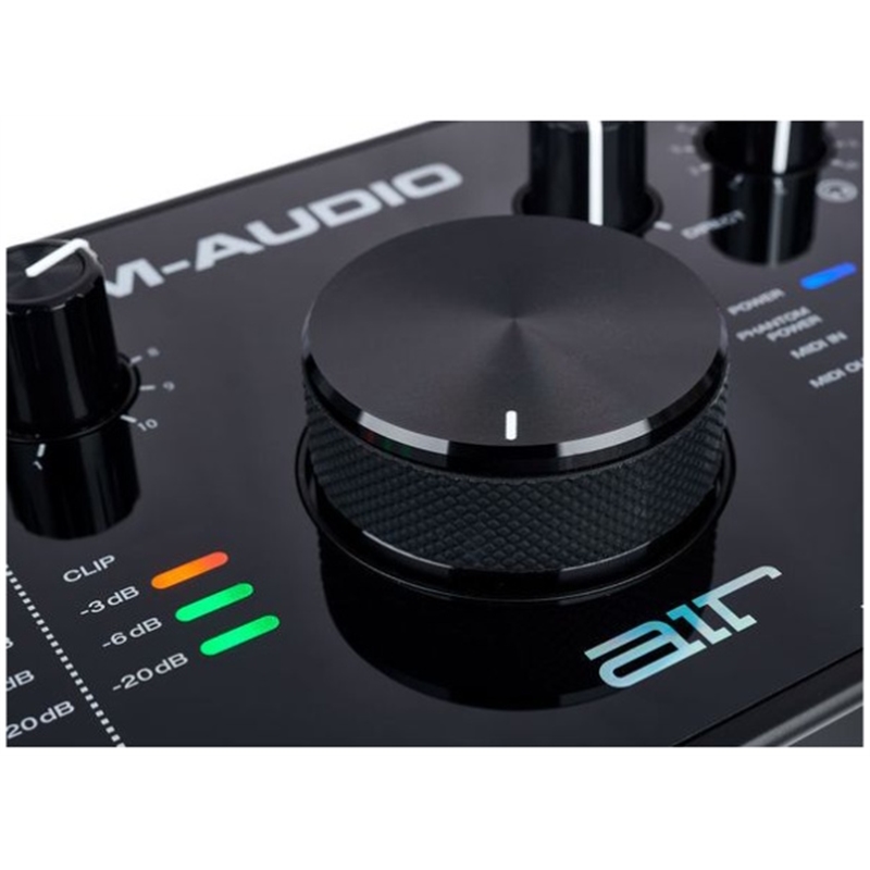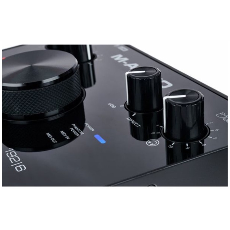 O M-Audio AIR 192|6 dá-lhe tudo o que precisa para uma gravação profissional com qualidade de estúdio de 24-bit/192 kHz. Além da elegante caixa, que se encaixa perfeitamente em qualquer ambiente de estúdio, há um grande botão central para uma operação confortável durante o monitoramento. No que diz respeito ao som, estão disponíveis os exclusivos Crystal Pre-Amps, que marcam com um auto ruído extremamente baixo e uma amplificação cristalina. Além disso, existem conversores A/D de alta qualidade que oferecem o melhor desempenho de áudio possível na sua classe.