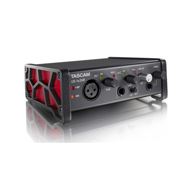 O US-1x2HR é o menor membro da série Tascam US-HR de interfaces de áudio USB de alta resolução. Tem uma entrada de microfone e uma entrada de instrumento e, portanto, é particularmente adequado para gravação de guitarra / voz simples e intuitiva com um computador.