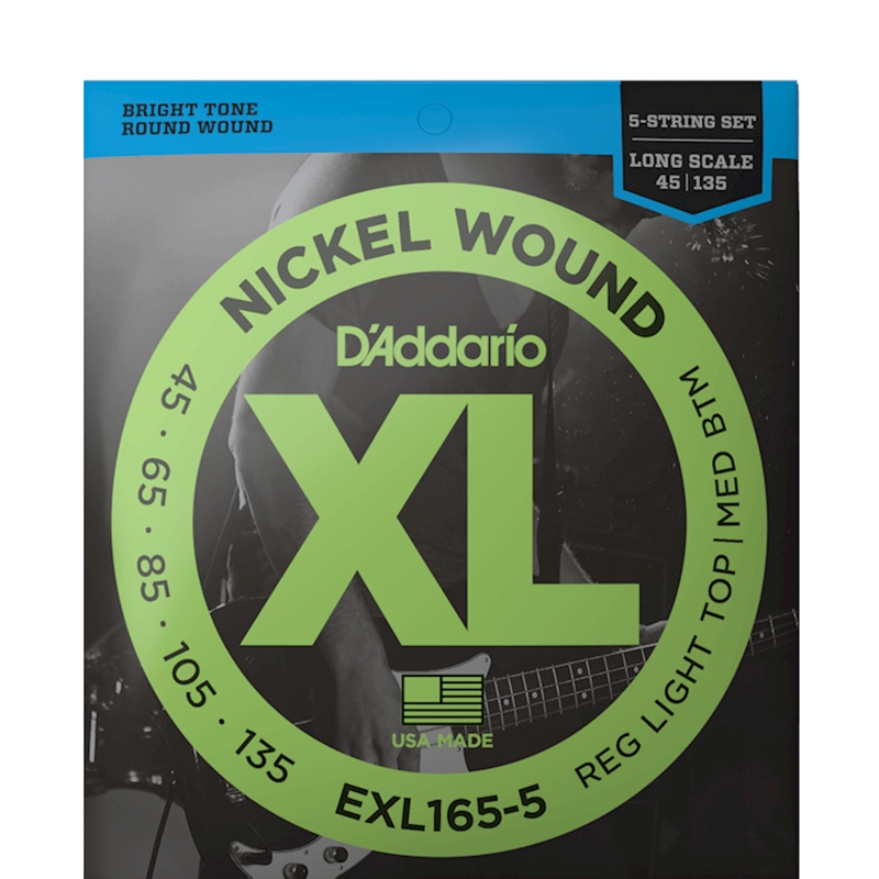O EXL165-5 é um jogo de cordas para baixo de 5 cordas híbrido que combina o EXL170 e o EXL160 para a combinação ideal de tons de graves distintos, brilhantes e poderosos. As cordas de baixo elétrico XL Nickel Wound, há muito reconhecidas como o padrão da indústria, são ideais para uma ampla variedade de estilos musicais.