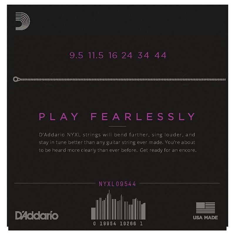 As cordas NYXL's fabricadas pela D'Addario, são duma liga de aço de alto carbono para uma força sem precedentes para poder tocar sem medo. Estabilidade de afinação aprimorada em comparação com as tradicionais cordas de níquel.