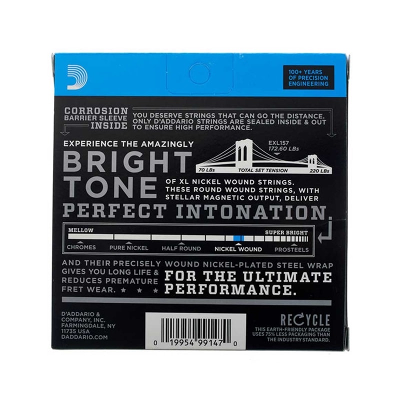 O EXL157 é um jogo de cordas otimizado para guitarras barítono elétricas tradicionais de escala mais longa. As cordas de guitarra elétrica XL Nickel Wound, há muito reconhecidas como o padrão da indústria, são ideais para uma ampla variedade de estilos musicais.