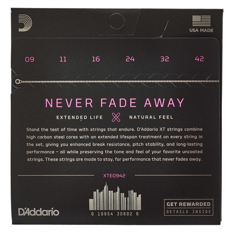 As cordas de aço niquelado para guitarra eletrica D'Addario XT combinam a nossa liga de guitarra elétrica mais popular com um tratamento avançado de resistência à corrosão em todas as cordas do conjunto, preservando o som natural e a sensação das cordas não revestidas. Disponível para guitarra elétrica de 6 cordas em várias tensões.