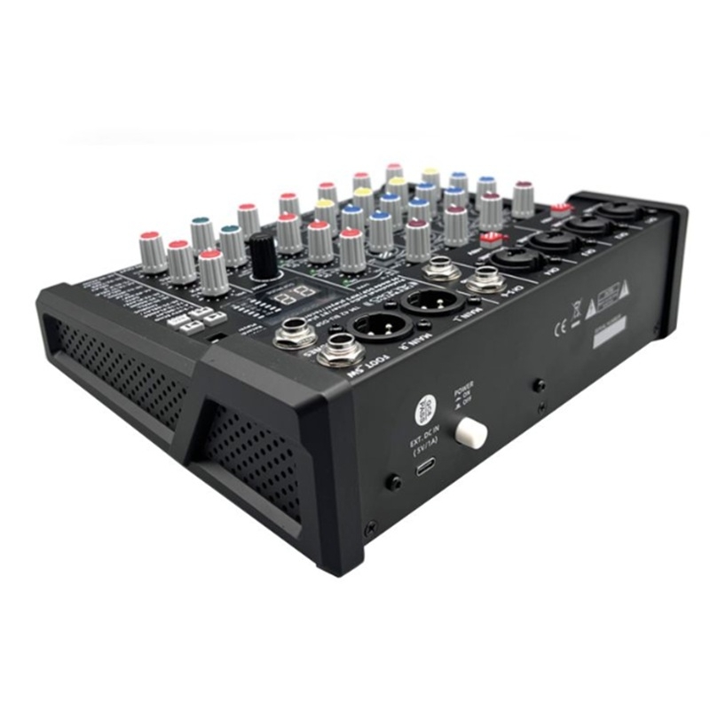 - Entradas: 4 combos XLR/Jack, 2 jacks mono de 6,35 mm, 1 jack AUX de 3,5 mm