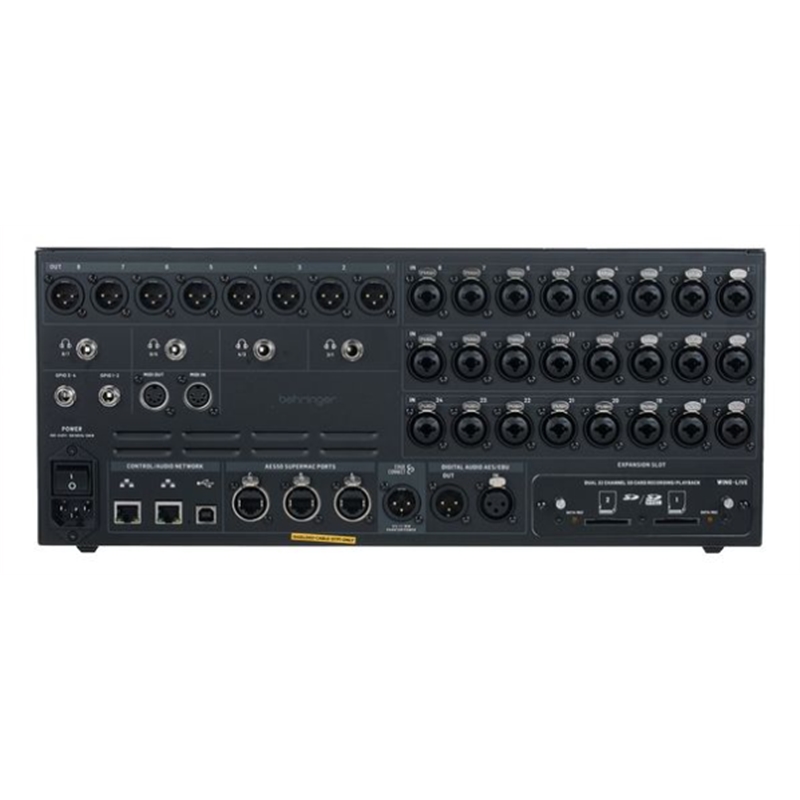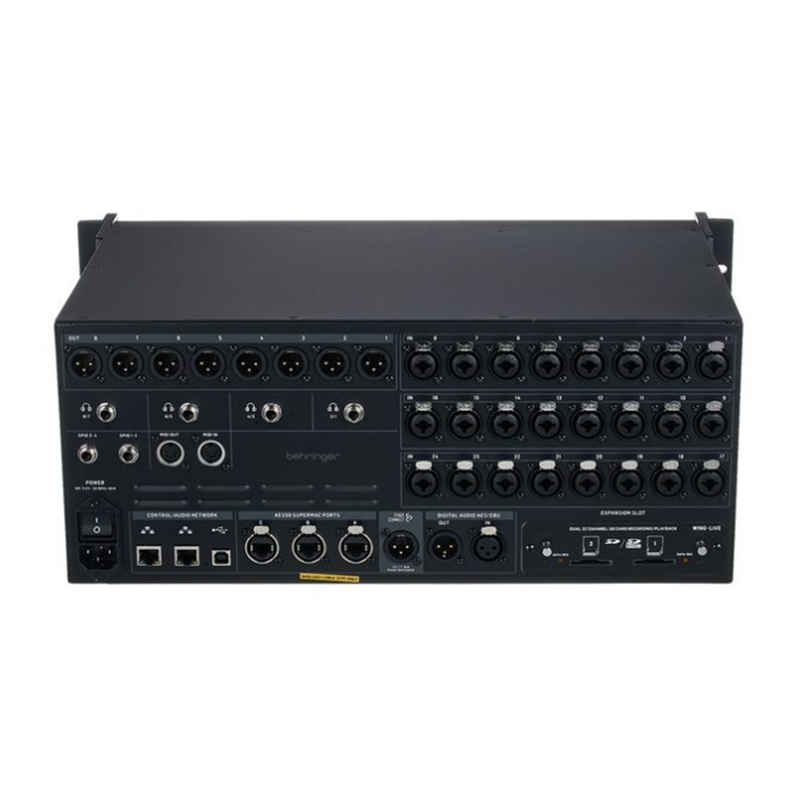 O Behringer WING RACK Rackmount Digital Mixer é uma mistura digital de 48 canais e 28 barramentos engine concebida para engenheiros de áudio profissionais que procuram uma solução compacta, mas potente. Com 24 pré-amplificadores Midas PRO e 8 saídas de linha e 4 saídas de auscultadores dedicadas para monitorização, proporciona uma qualidade de áudio excecional. O ecrã tátil de 10" com WING UI e controlos personalizados oferece um funcionamento intuitivo, enquanto a gravação em cartão SD duplo e uma interface USB de 48x48 canais asseguram uma integração perfeita para live aplicações de gravação e estúdio.