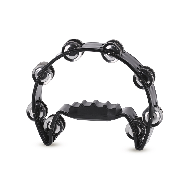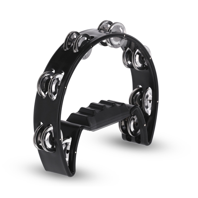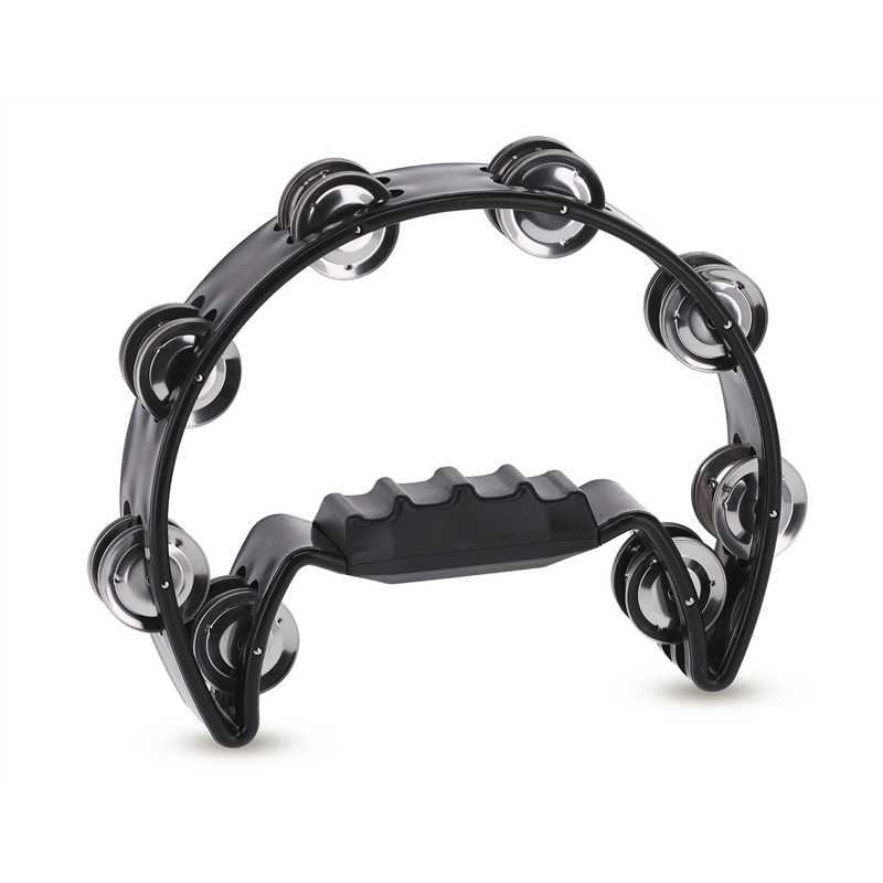 Pandeireta formato de meia lua com 16 pares de jingles cromados