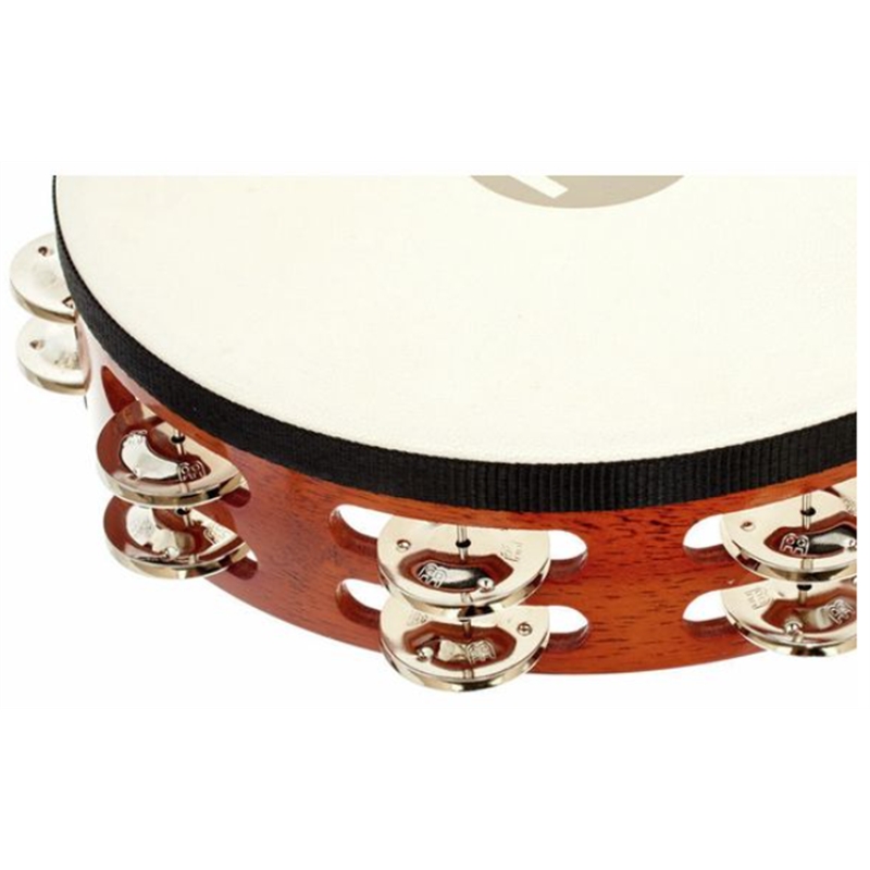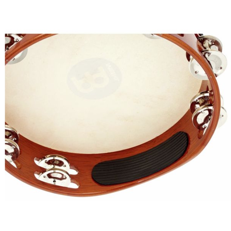 Pandeiro de madeira com cabeça de 25,4 cm, fila dupla, guizos em aço niquelado.