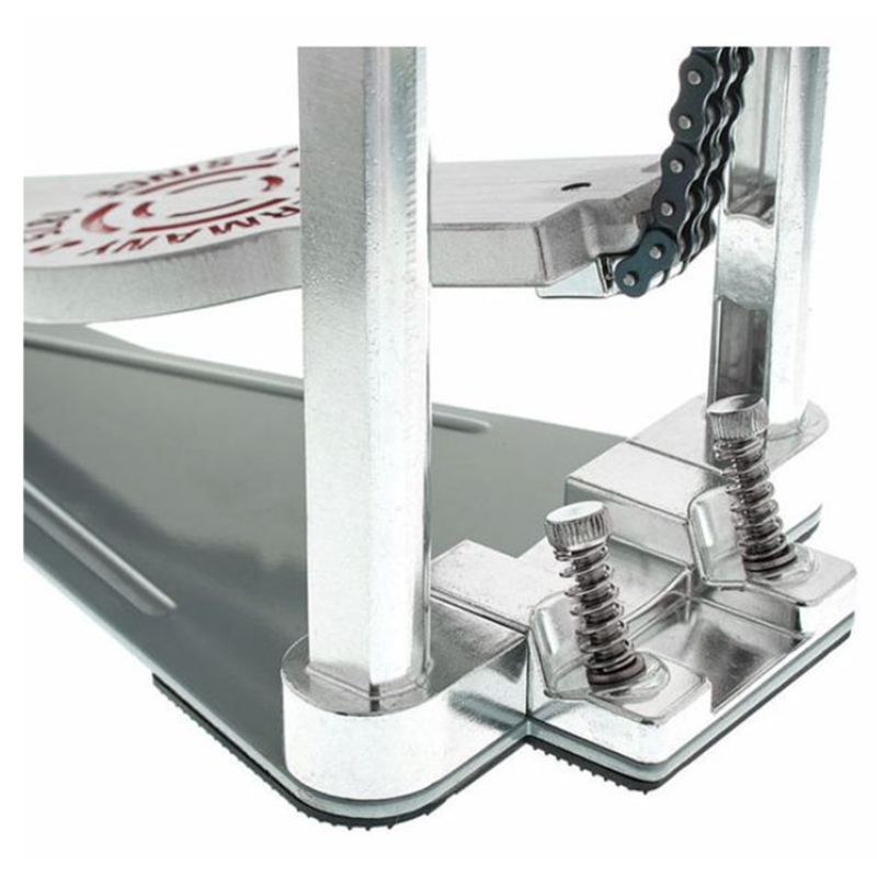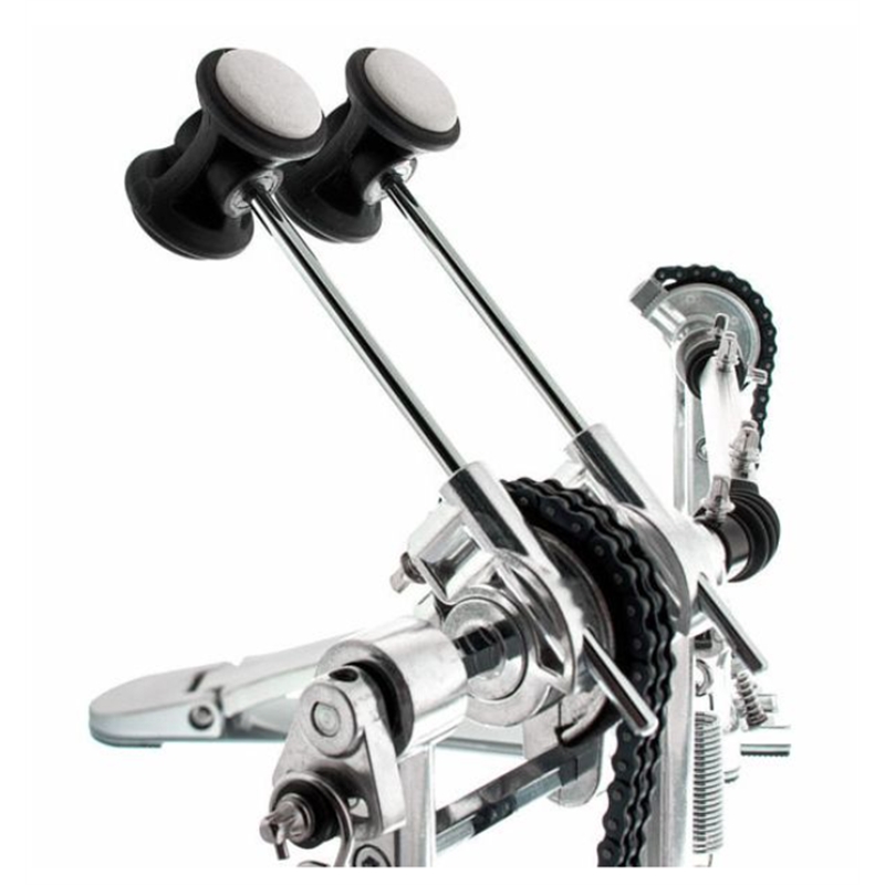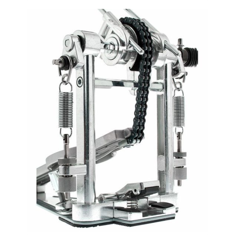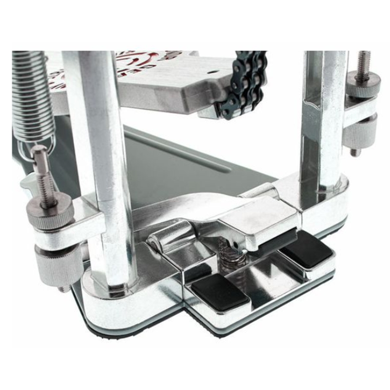 Este pedal possui uma transmissão de corrente dupla que proporciona um desempenho suave e consistente, essencial para sessões de bateria complexas. Os cavaletes sem engrenagens e os grampos de pratos de libertação rápida tornam o ajuste e a configuração do seu kit rápidos e sem frustrações, permitindo concentrar-se mais no seu desempenho e menos nos ajustes do equipamento.