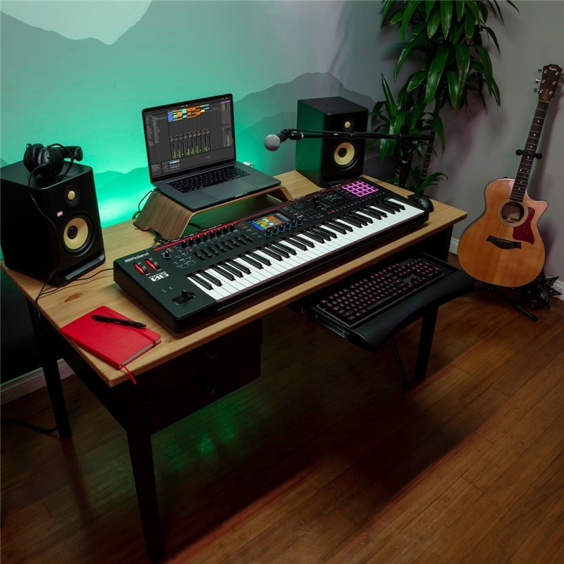 FANTOM-0 adapta-se perfeitamente a configurações de produção modernas com um Interface de áudio USB 4x32 incorporado, enquanto a integração nativa com Logic Pro, MainStage e Ableton Live permite interagir com o software através do ecrã tátil e controlos hardware. Além disso, pode combinar livremente sintetizadores em software com os sons internos e interface do FANTOM-0, basta utilizar o seu hardware MIDI favorito através da saída MIDI dedicada.