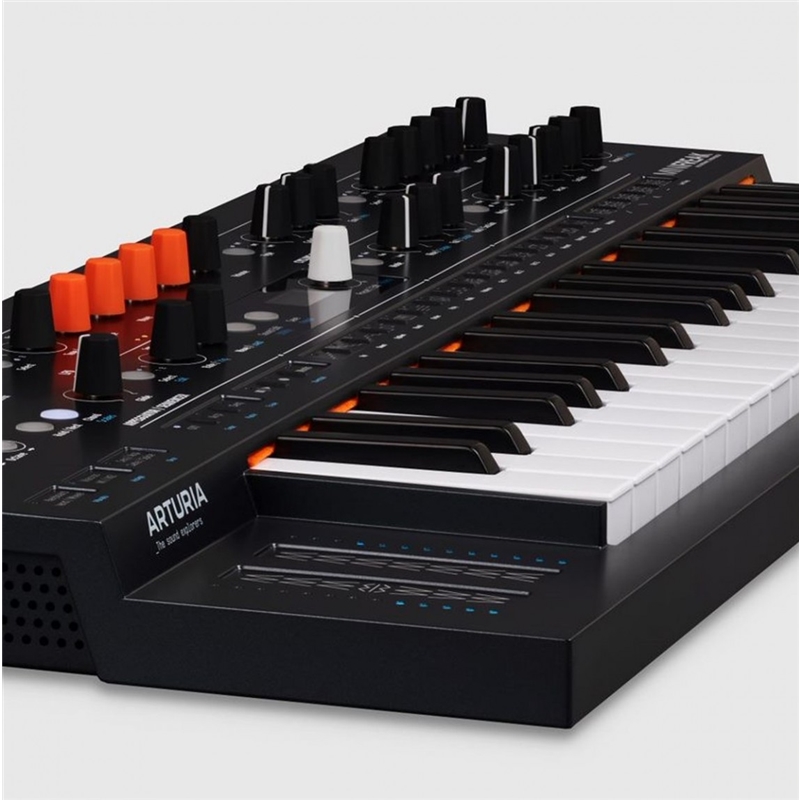 Dois motores de som digital por voz com 22 modos de oscilador selecionáveis: Superwave, Wavetable, Karplus Strong, Noise e muitos mais