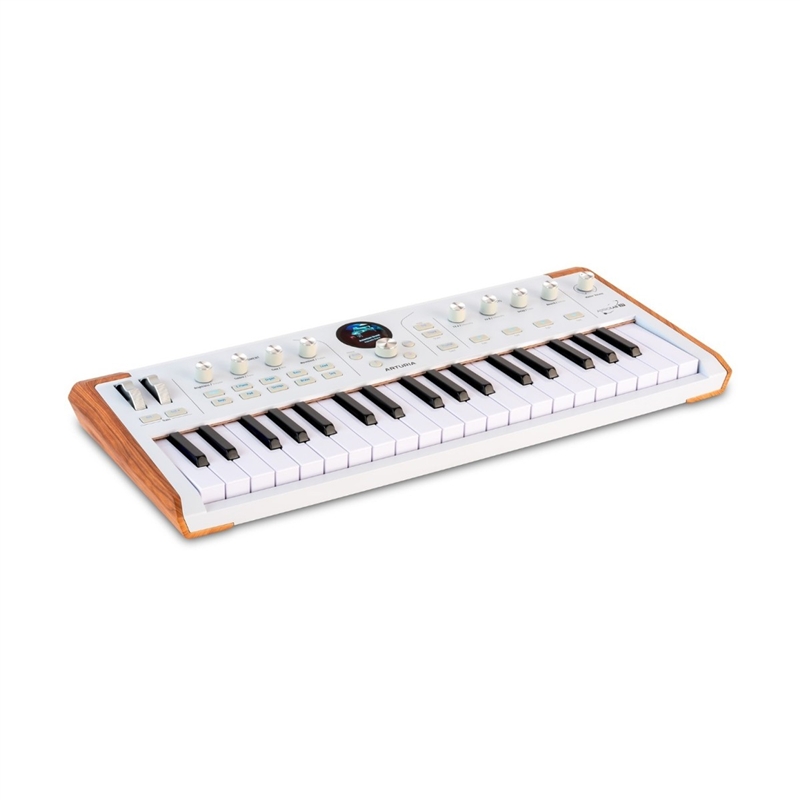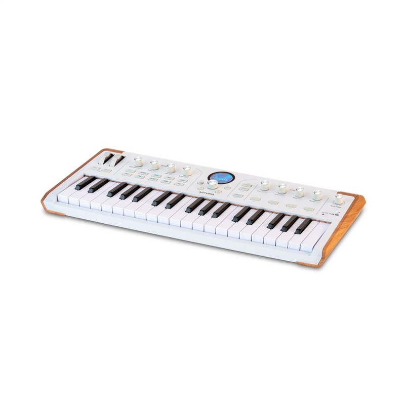 Equipado com um teclado fino de 37 notas com aftertouch, o Astrolab oferece uma tocabilidade fluida, proporcionando uma sensação rica e natural ao premir as teclas que levará a sua atuação para o próximo nível. Pode também modular o seu som usando as rodas de pitch e modulação. Uma seleção de botões rotativos permite-lhe selecionar rapidamente determinados parâmetros, tais como delay, reverb, movimento e muito mais. Também pode alternar rapidamente entre os modos 'Arp' e 'Chord' com botões dedicados.