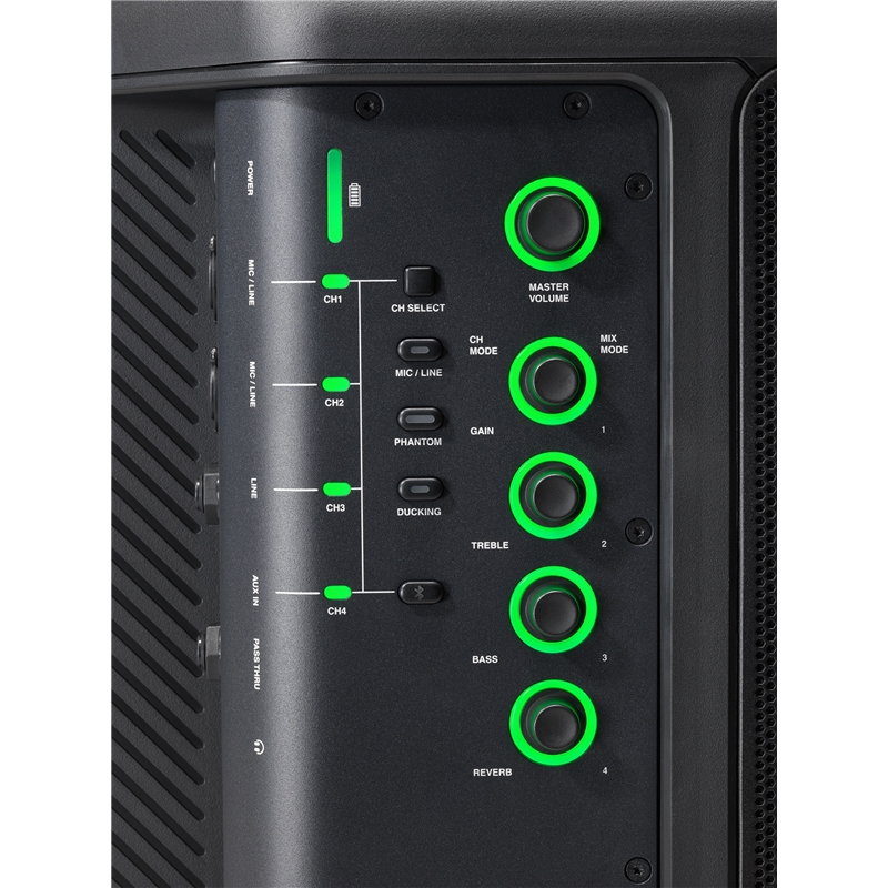 Projetado em conjunto com especialistas em mesas de mistura Soundcraft, o EON ONE Compact PA está pronto para tudo. Completo com uma mesa de 4 canais completa, pode facilmente equilibrar os seus níveis de volume, controlar os efeitos embutidos, EQ, Reverb, Chorus e Delay, ligar ou desligar o phantom power, a auto redução do volume da música e controle de graves e agudos, tudo ao seu alcance. Com apenas um toque, inspirado em soundcraft, reduz automaticamente o volume da música de fundo sempre que alguém fala, para garantir que o público ouça cada palavra.