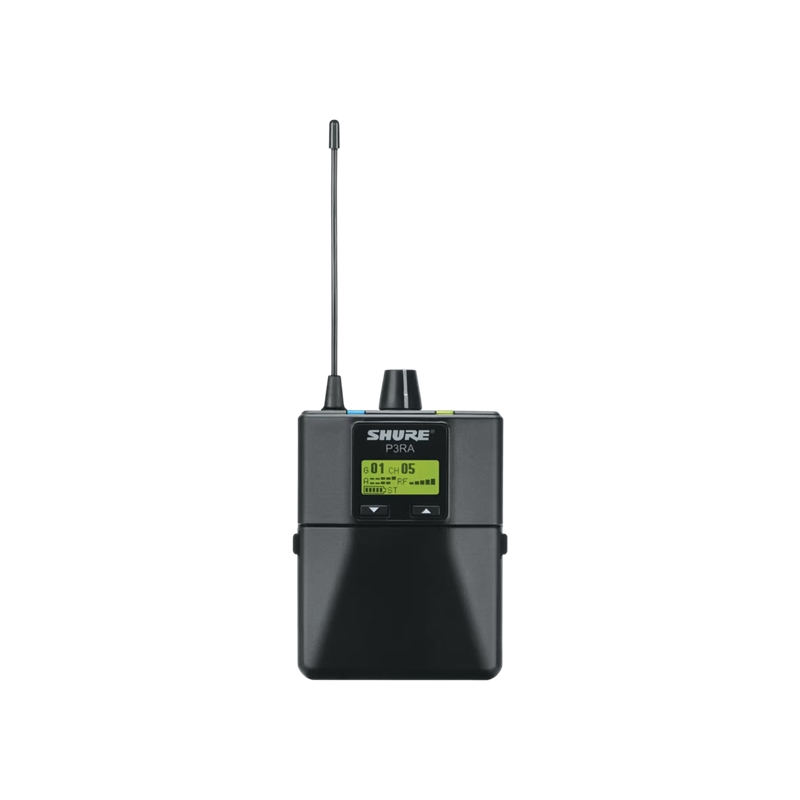 Bodypack premium, receptor sem fio premium que oferece monitorização pessoal profissional com processamento de áudio digital de 24 bits e operação confiável.