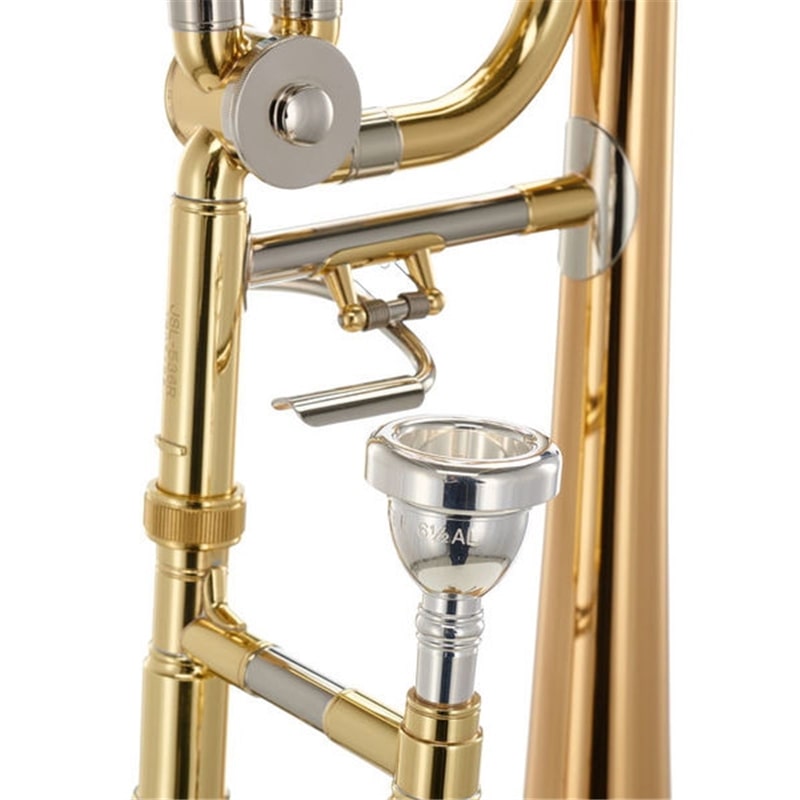 O trombone tenor com transpositor Jupiter JTB1100FR foi projetado para fornecer um tom aveludado - ideal para qualquer ambiente musical. Semelhante aos trombones profissionais, o slide interno do trombone da Júpiter é feito de prata níquel cromada dura. O níquel prata é usado por ser muito denso e menos propenso a dobrar. O slide é então cromado para garantir o acabamento liso para a melhor ação possível.