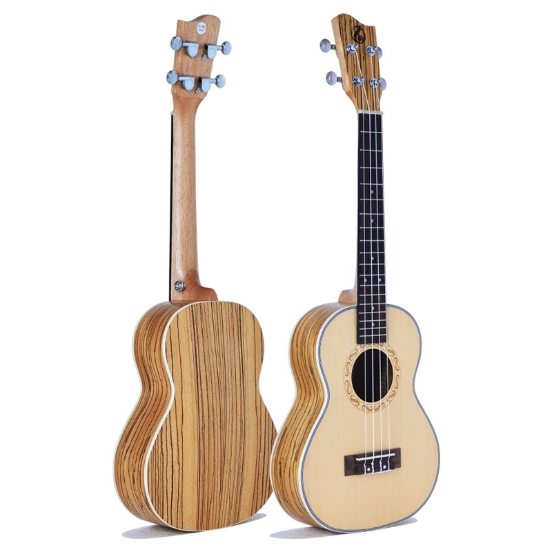 Ukulele em Zebrawood com sonoridade fantástica. Carrilhões de afinação de alta qualidade, cordas Aquila construído em abeto e mogno com braço de mogno, e pinos de correia diferenciam este ukulele dos demais.